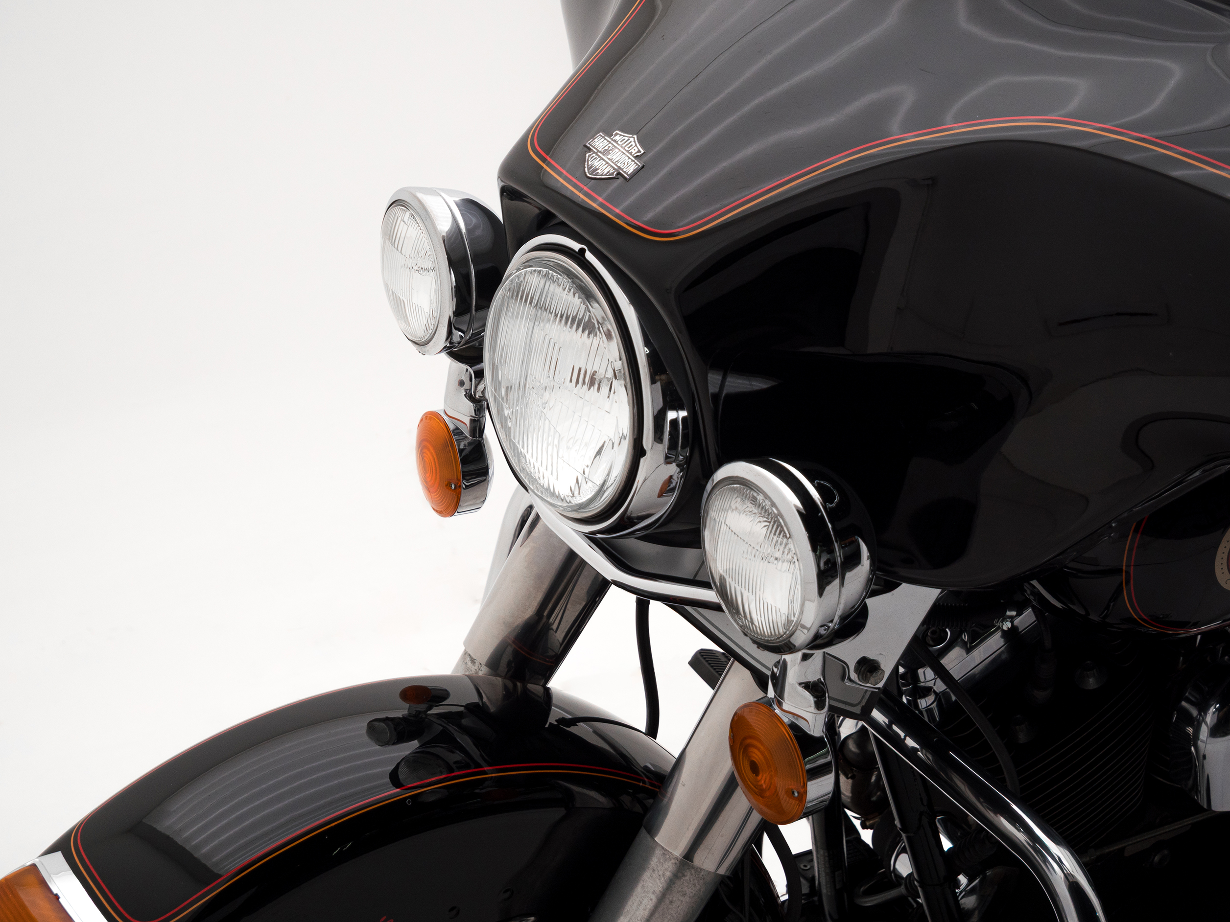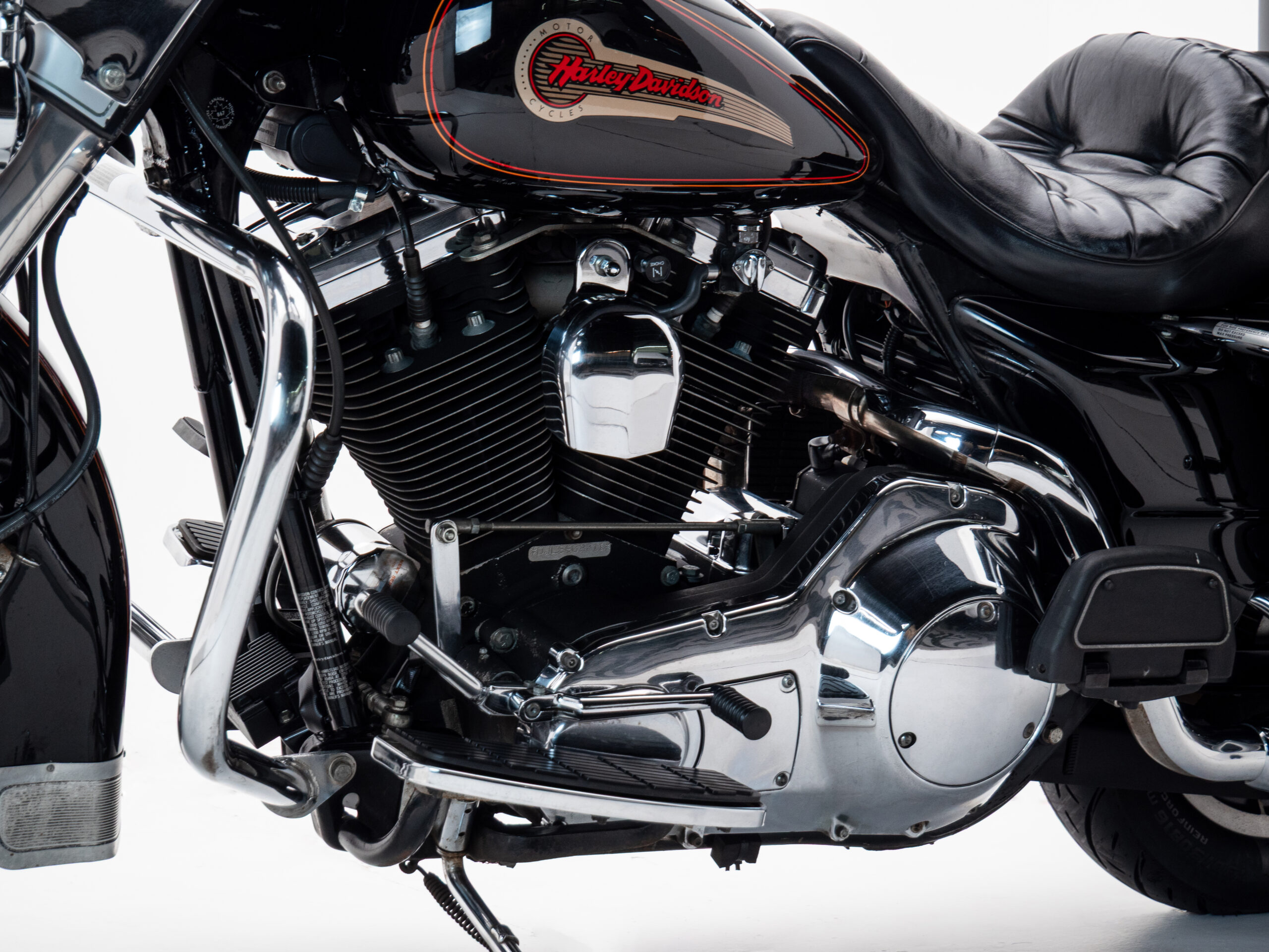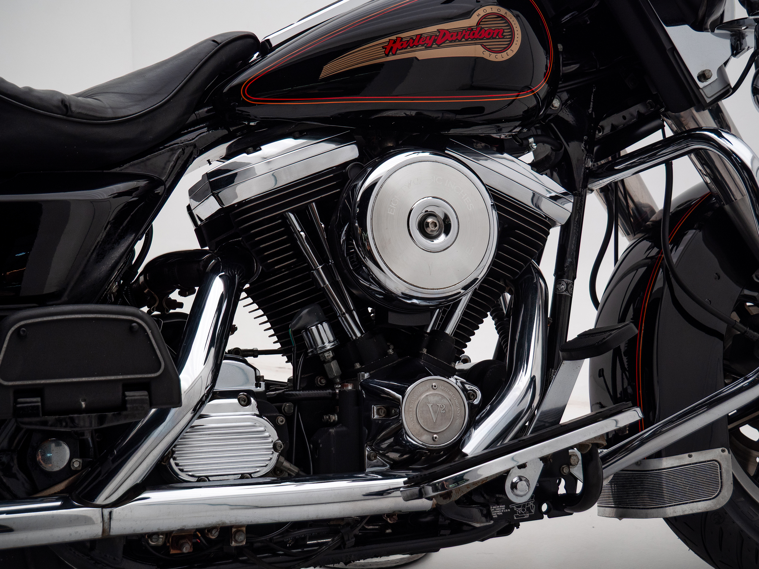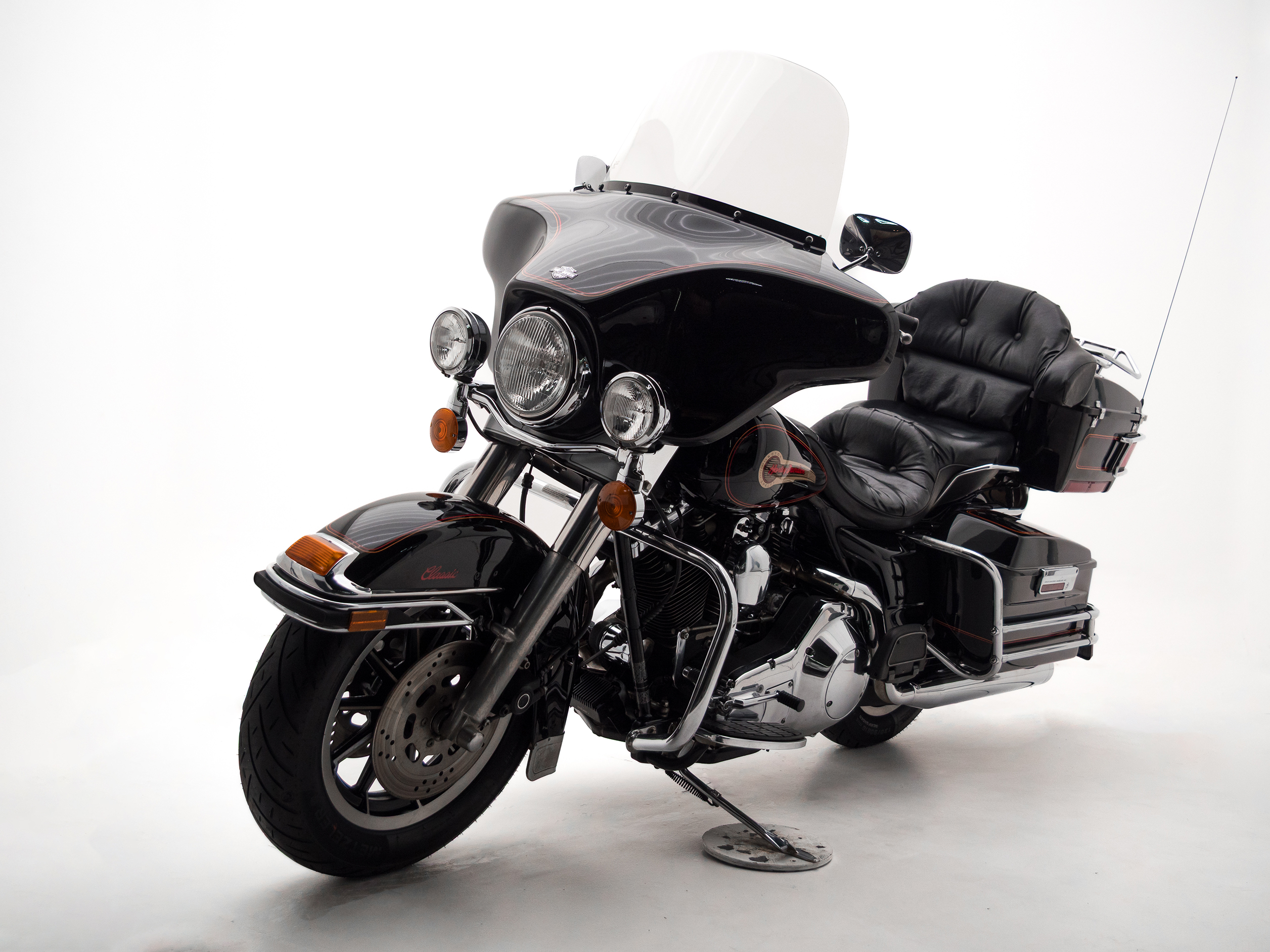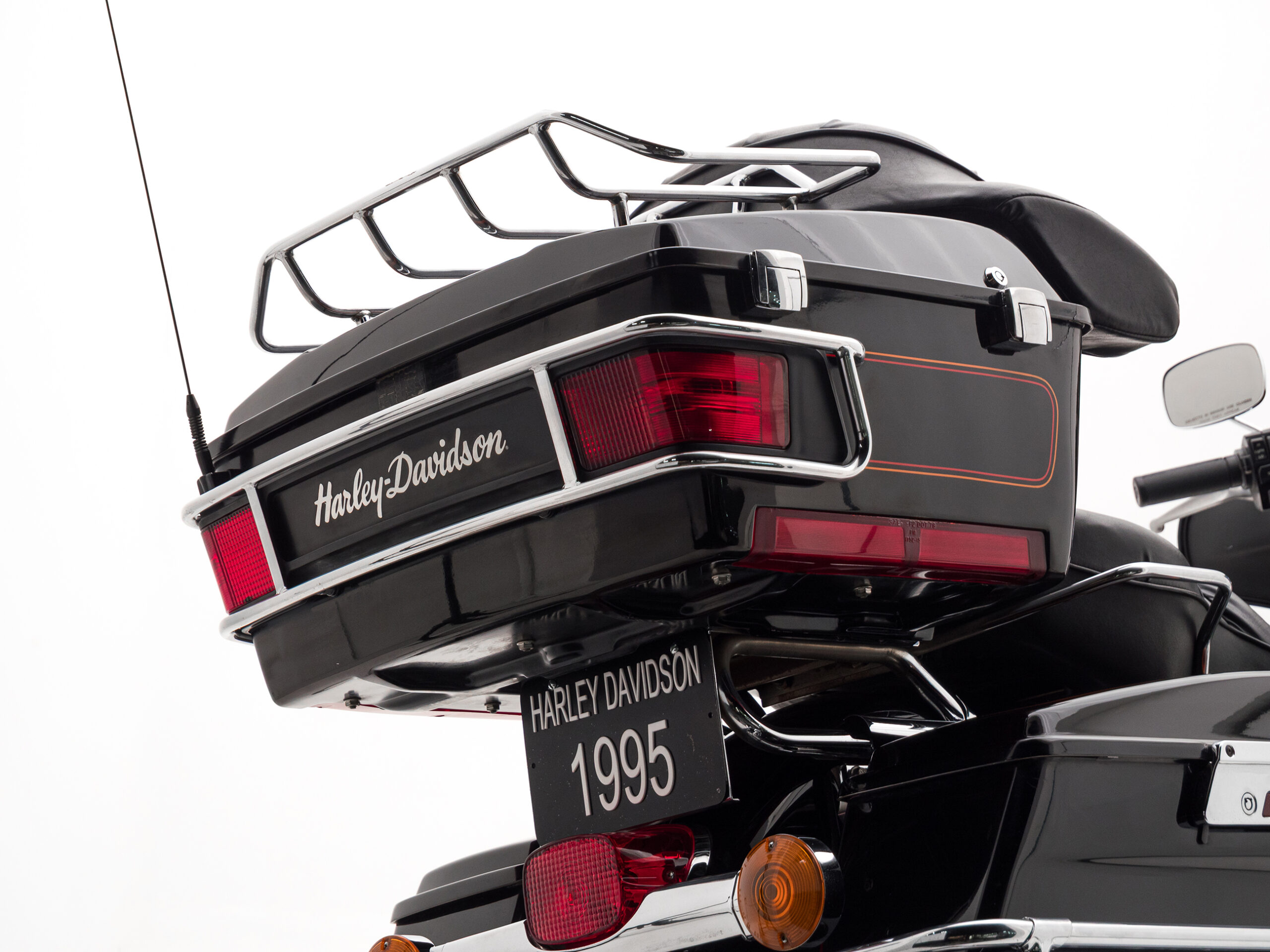 O rádio original HD toca fitas, traz um charme retrô que é impossível de ignorar. Com placa preta e um visual cheio de cromados, essa Electra Glide é rara no Brasil e carrega toda a essência da era de ouro da marca.