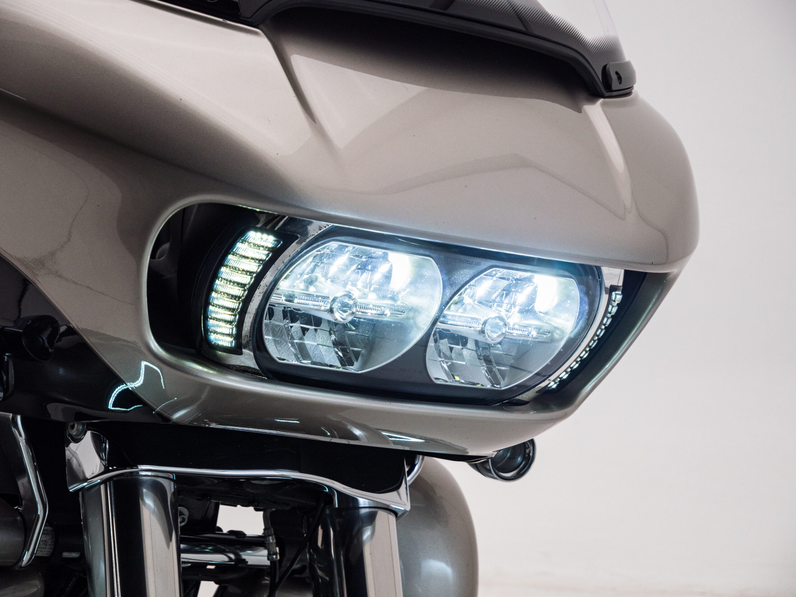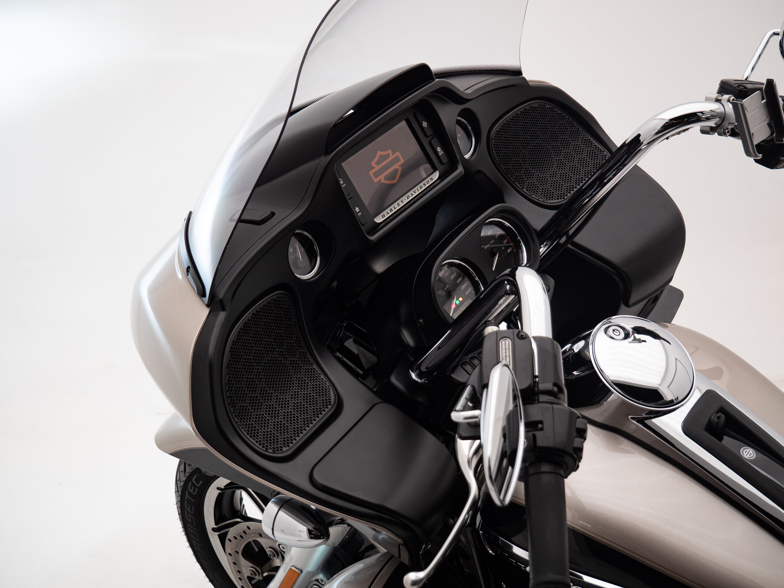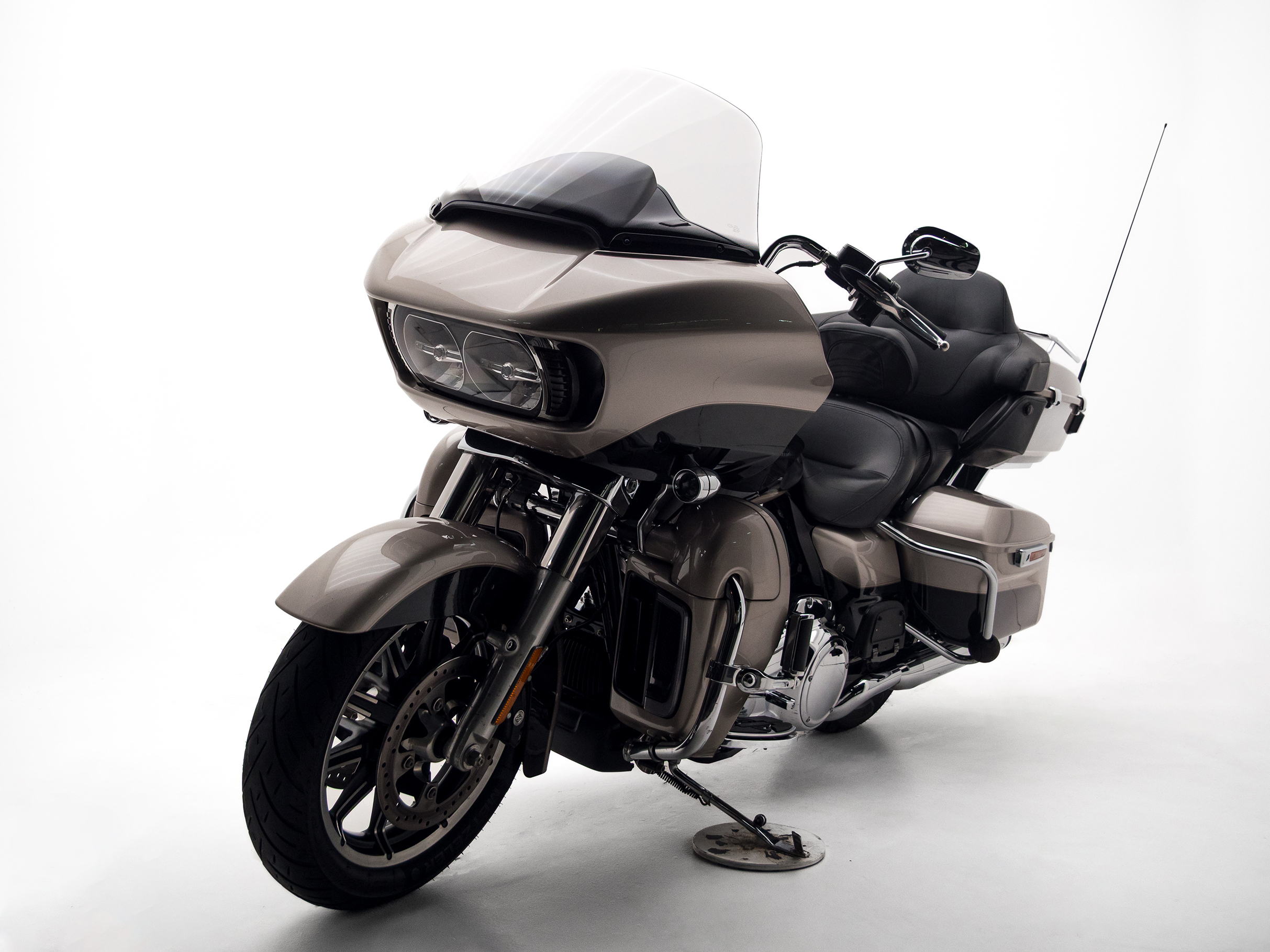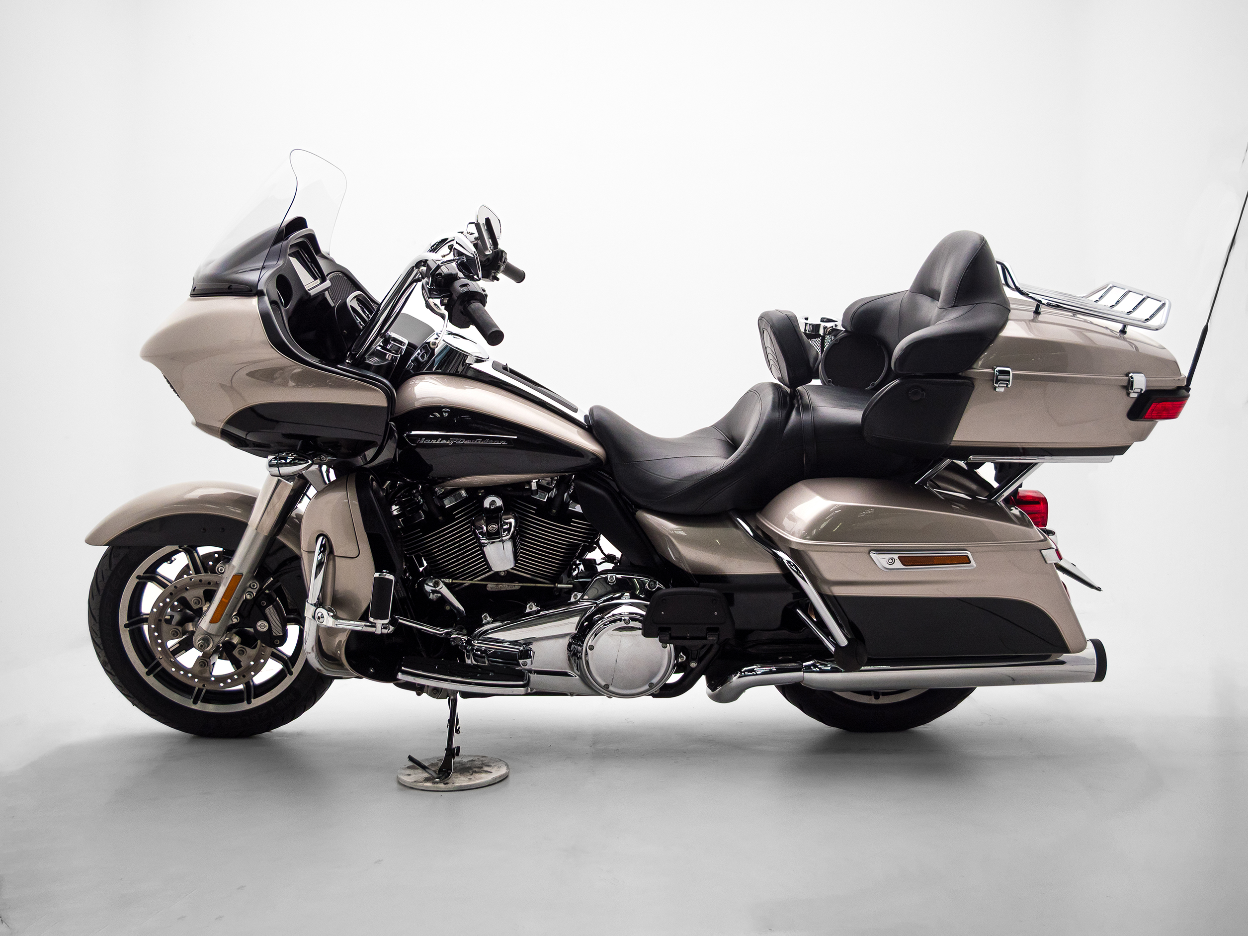 A Road Glide Ultra é uma touring feita para cruzar continentes com conforto e autoridade. Seu design imponente, carenagem fixa e dupla iluminação LED garantem presença e visibilidade. Com som premium, piloto automático e malas rígidas, transforma longas viagens em experiências de puro prazer sobre duas rodas.