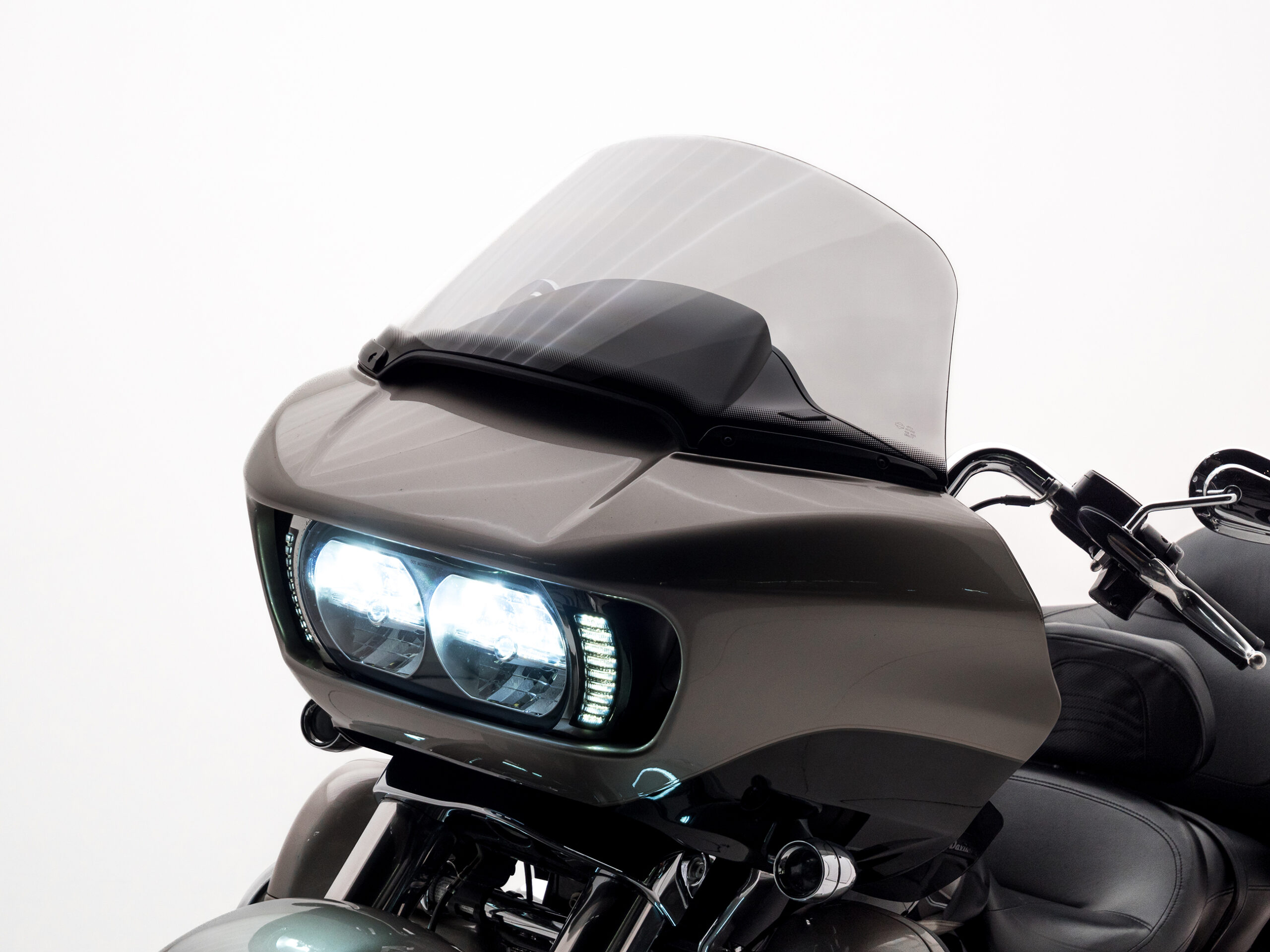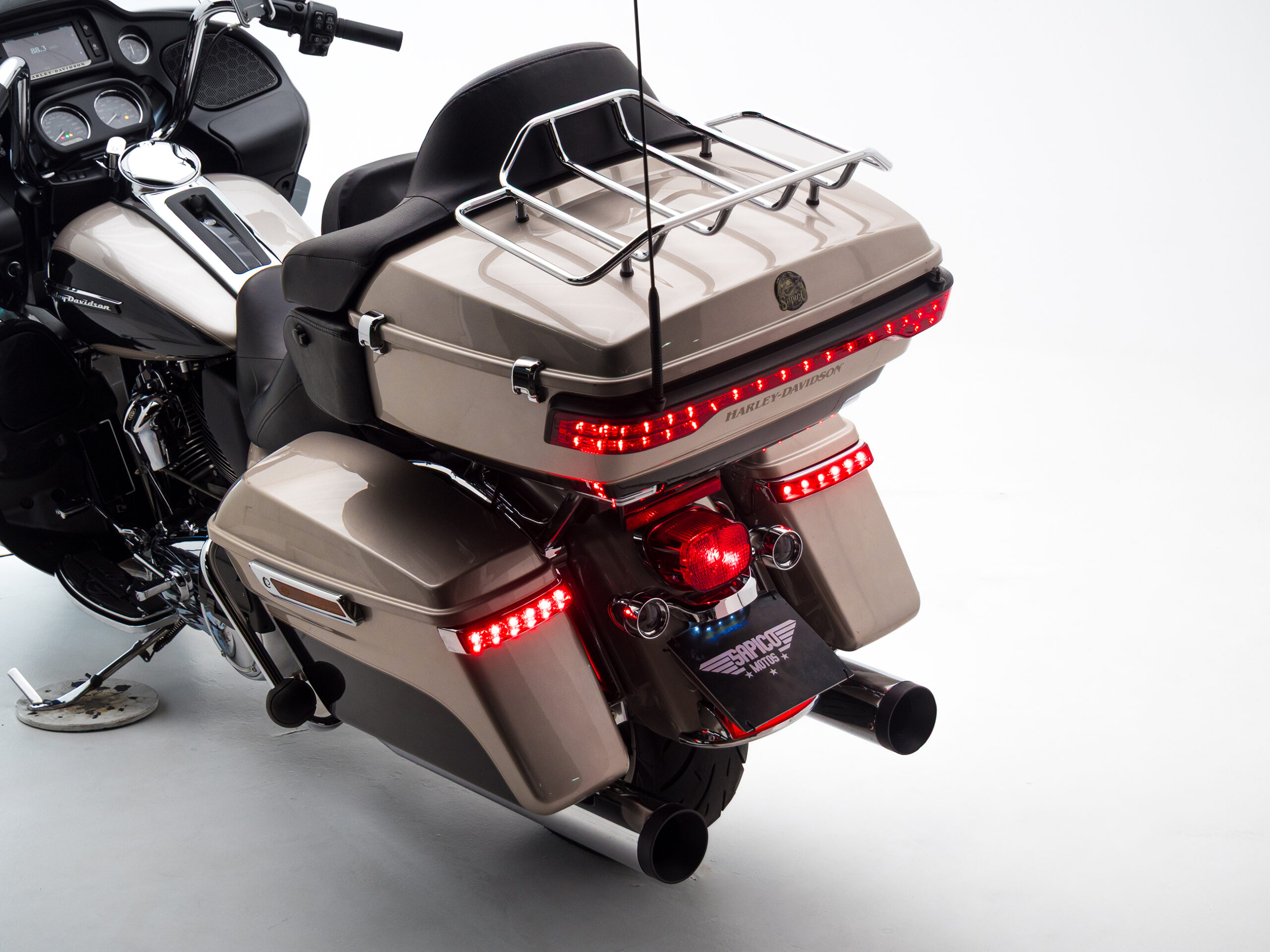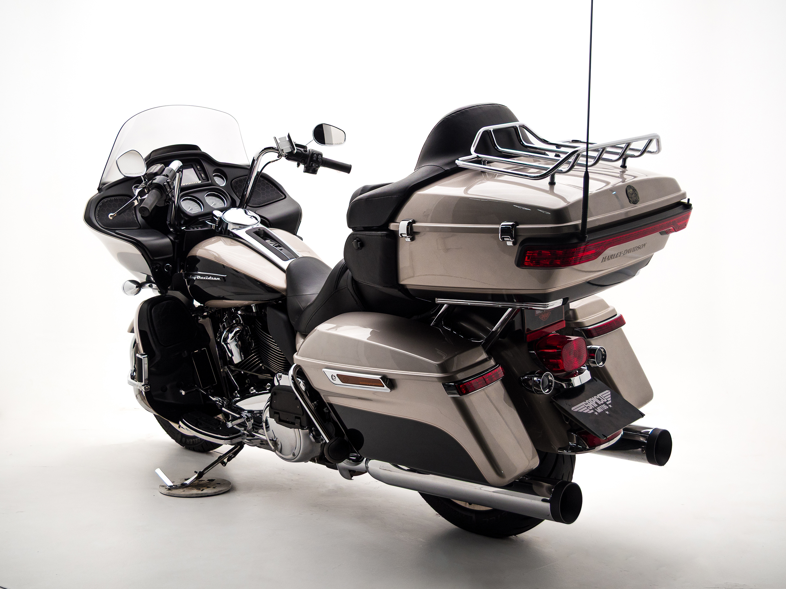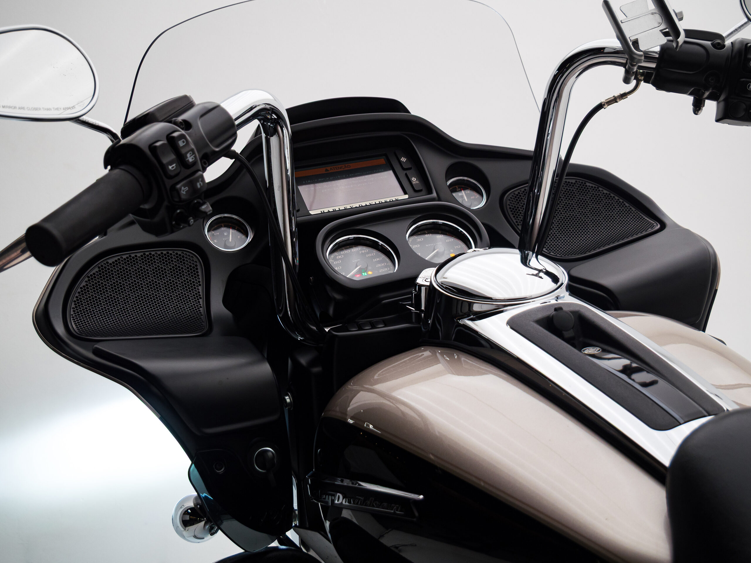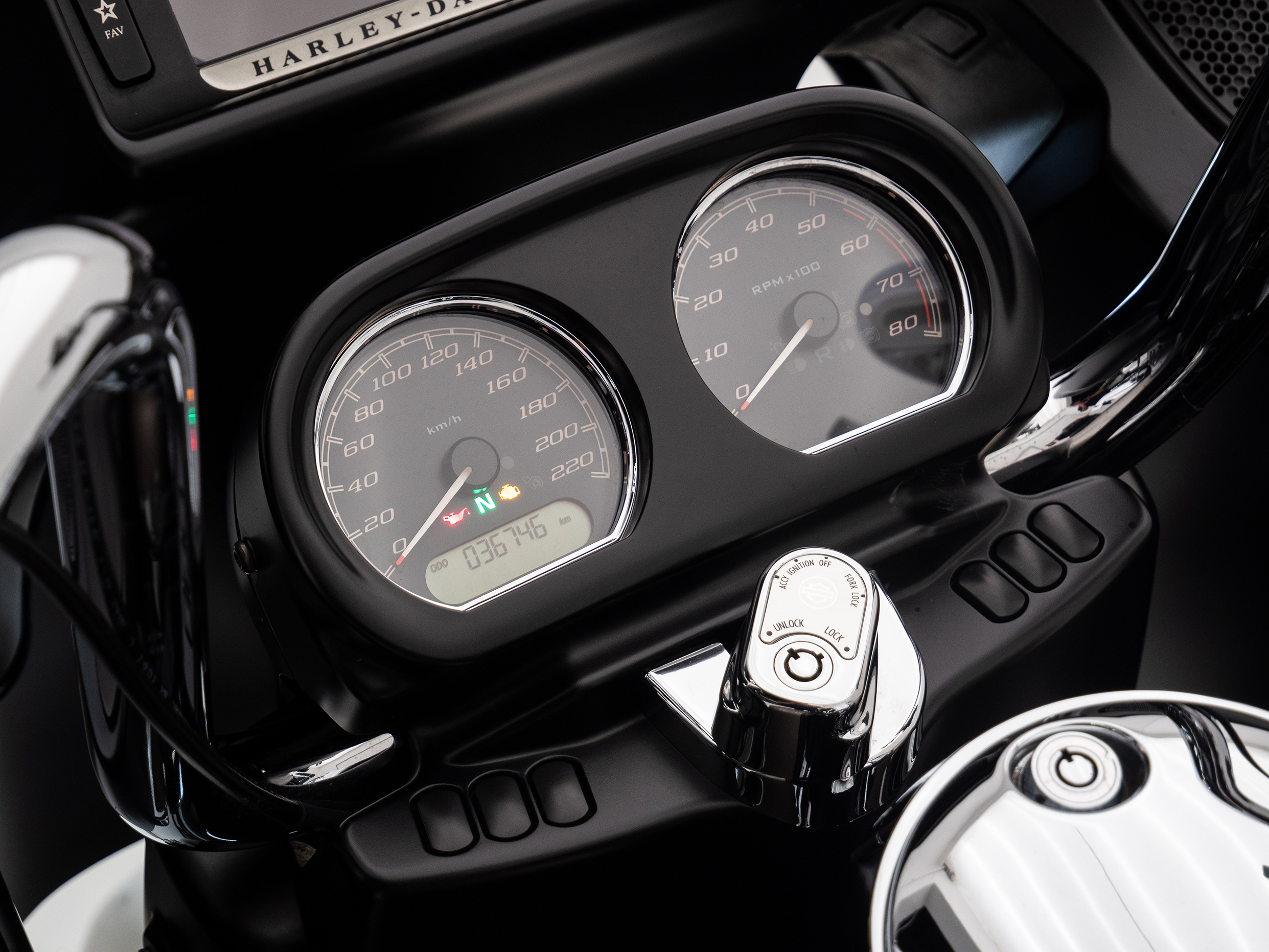 A Road Glide Ultra é uma touring feita para cruzar continentes com conforto e autoridade. Seu design imponente, carenagem fixa e dupla iluminação LED garantem presença e visibilidade. Com som premium, piloto automático e malas rígidas, transforma longas viagens em experiências de puro prazer sobre duas rodas.