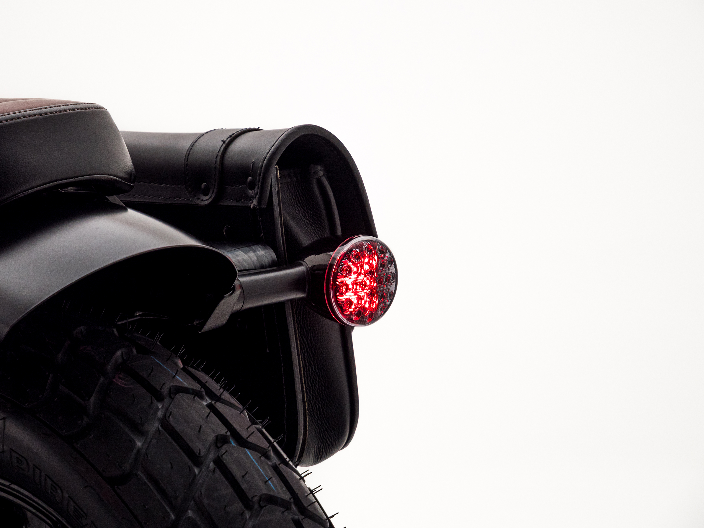 - Suspensão traseira: Dois amortecedores (dual shocks), curso de 2,0 in (50 mm) — altura reduzida 1 in em relação à Scout padrão